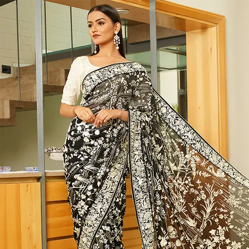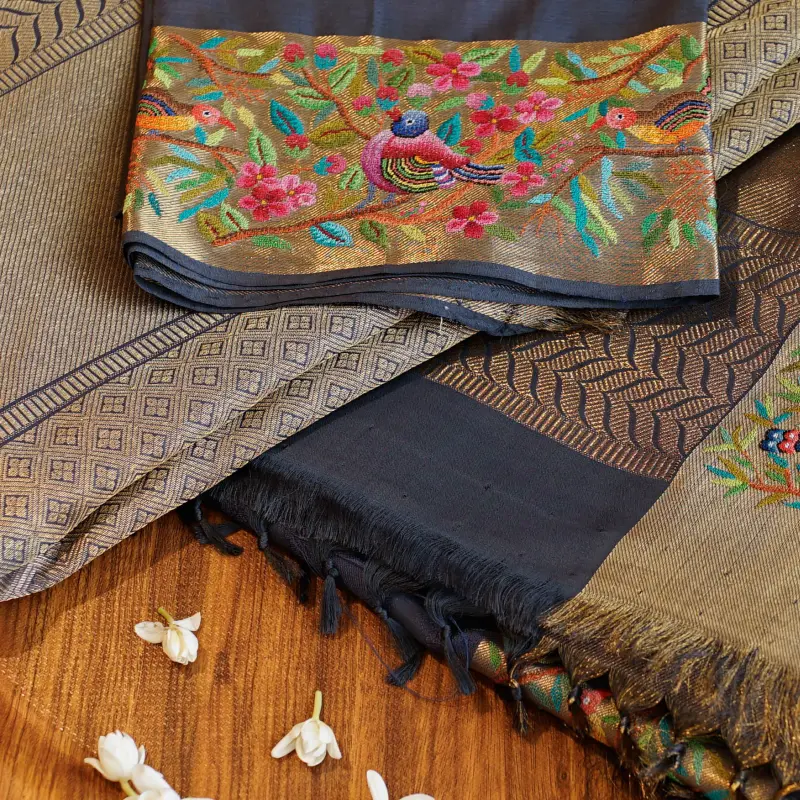 At Prastuti, we proudly preserve the rich heritage of Parsi embroidery, particularly the Gara technique. Originating from the Parsi community in Persia, this intricate art form is known for its floral motifs and vibrant, nature-inspired designs featuring birds, flowers, and vines.